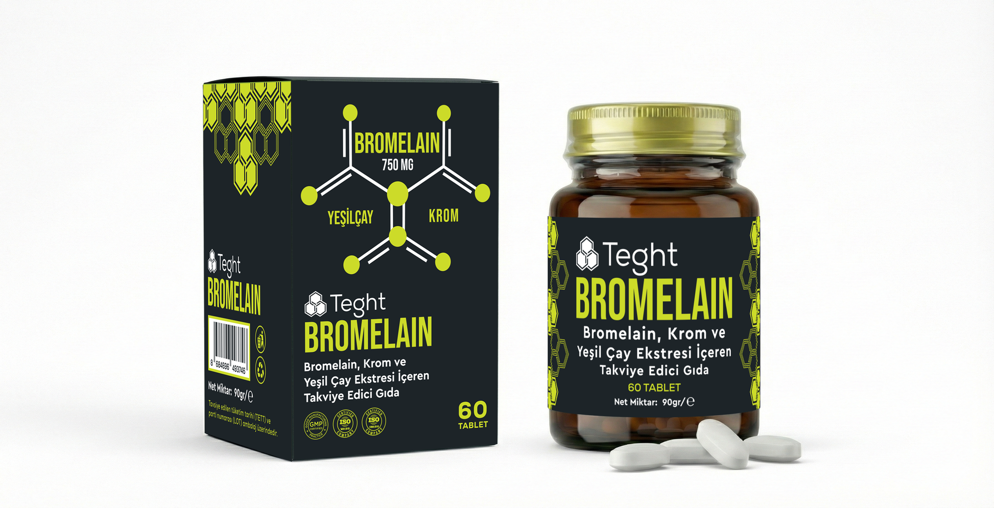 Bromelain, Krom ve Yeşil Çay Ekstresi İçeren Takviye Edici Gıda, bitkisel kaynaklı enzim ve mineral içeriğiyle geliştirilmiş özel bir formülasyondur.